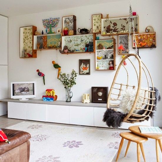 Who loves hanging chairs? I recently bought a cane 60's pod chair off a lady who had been given it by the elderly original owners, knowing that she'd admired it for years. She no longer had the space, so I got the chance to become it's loving new owner. It hangs on my front veranda, the perfect spot to sit and relax and nosey at the passers by. After I got it I started noticing images of them everywhere, and a trend for hanging them indoors, which I love. However, I fear it would extend the potential for indoor toddler acrobatics and would provide another tempting object to leap/swing from... so it's just not going to happen. I'll stick to admiring gorgeous images such as the ones above. I love the eclectic edge it brings to these rooms, gorgeous.
